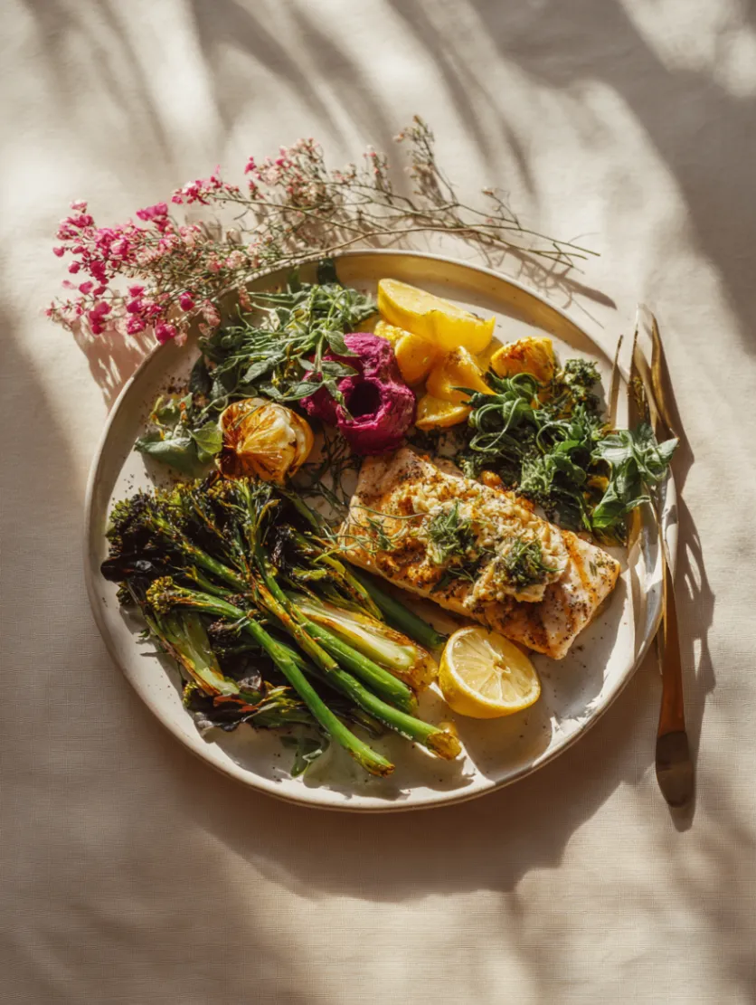 Ingredients: Chicken thighs, baby potatoes, green beans, olive oil, garlic, lemon, herbs Time: 25 minutes Why it’s perfect: Minimal cleanup, balanced nutrition, and the lemon keeps everything bright and fresh.