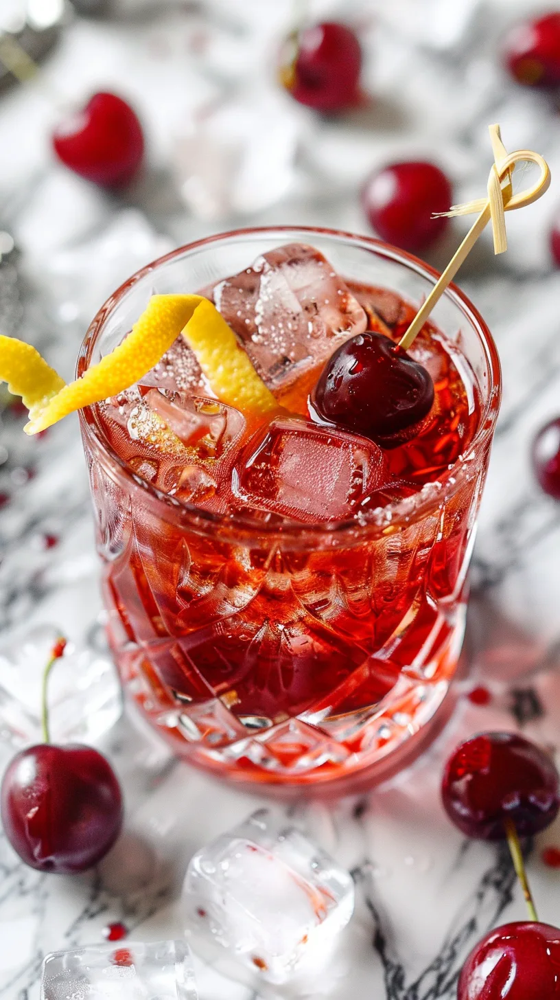 Create stunning garnish arrangements using fresh cherries, lemon twists, and sprigs of fresh mint. Thread multiple cherries onto cocktail picks for an abundant, festive look that emphasizes the drink’s name and main flavor. A sugar rim adds sparkle and extra sweetness – dip glass rims in lemon juice, then in coarse sugar mixed with a small amount of cherry juice for color.