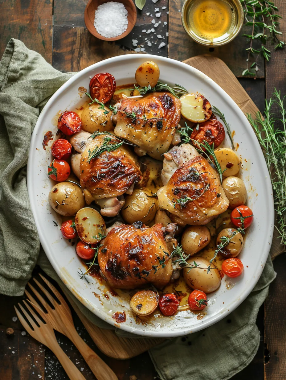 The Family-Style Approach For casual dinners, present Chicken Thigh Recipes 2025 on a large platter garnished abundantly with fresh herbs, lemon wedges, and surrounding vegetables. This encourages sharing and conversation while showcasing the abundance of your cooking. Arrange chicken pieces in a slightly overlapping pattern rather than in straight lines—asymmetry looks more natural and appealing.