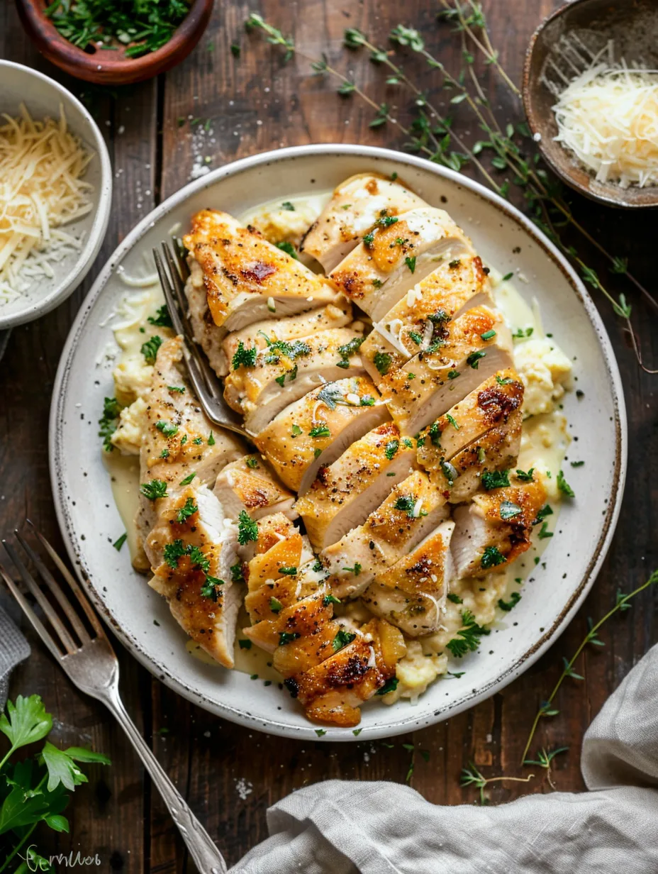 Create height on your plate by slightly overlapping the chicken pieces and adding your chosen side dishes at varying levels. A restaurant-style presentation for your Creamy Garlic Parmesan Chicken might include a small mound of garlic mashed potatoes topped with the chicken, with roasted vegetables arranged artfully alongside.