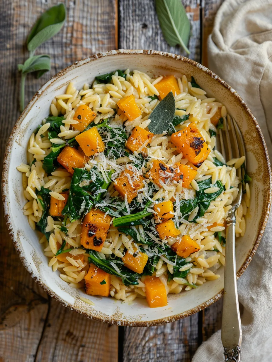 Creamy Orzo with Roasted Butternut Squash and Spinach