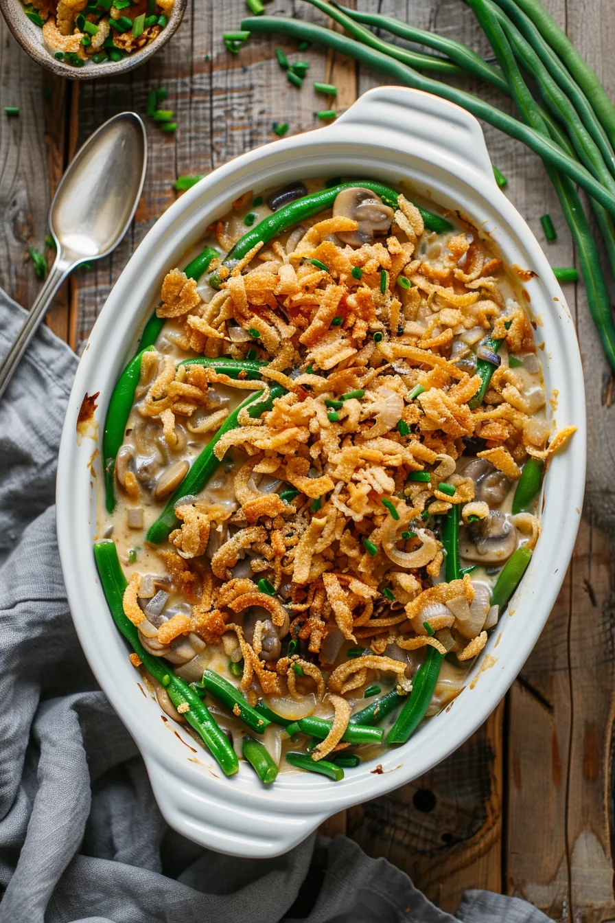 Crispy topping alternatives: While French fried onions are traditional, you can use crispy fried shallots, fried garlic, or panko breadcrumbs mixed with melted butter. Gluten-free eaters should choose gluten-free fried onions or crispy breadcrumbs.