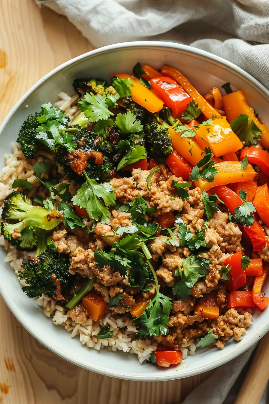 This colorful ground turkey recipe combines lean protein with nutrient-dense vegetables. Sauté ground turkey with bell peppers, broccoli, carrots, and zucchini in sesame oil. Add low-sodium soy sauce and fresh ginger for an Asian-inspired ground turkey recipe that reheats beautifully throughout the week.