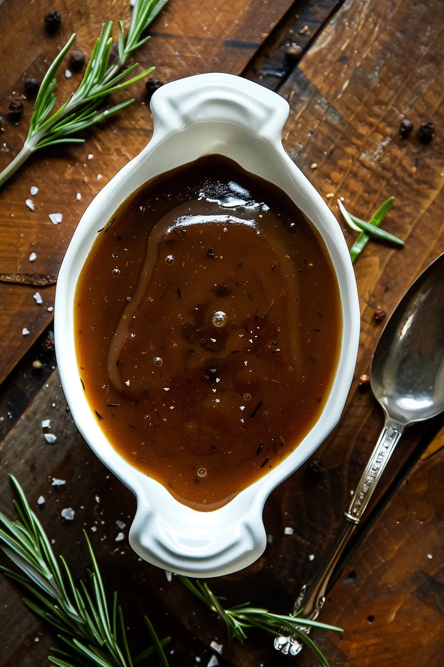Strain the sauce through a fine-mesh sieve if desired for the smoothest texture. This step is optional but makes your au jus recipe easy to pour and elegant.