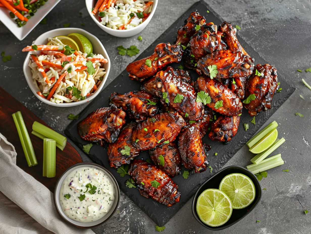 Create a stunning centerpiece by stacking wings pyramid-style on a decorative serving board. Surround the base with lime wedges, fresh mango slices, and small bowls of extra sauce. This dramatic presentation always impresses guests.