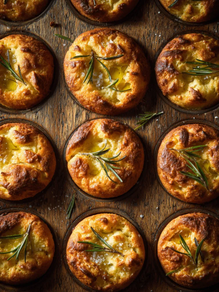 Golden Crust Garlic Rosemary Focaccia Muffins