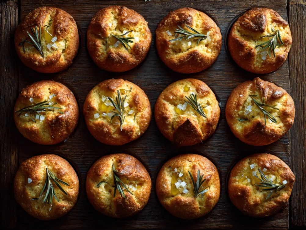 Golden Crust Garlic Rosemary Focaccia Muffins