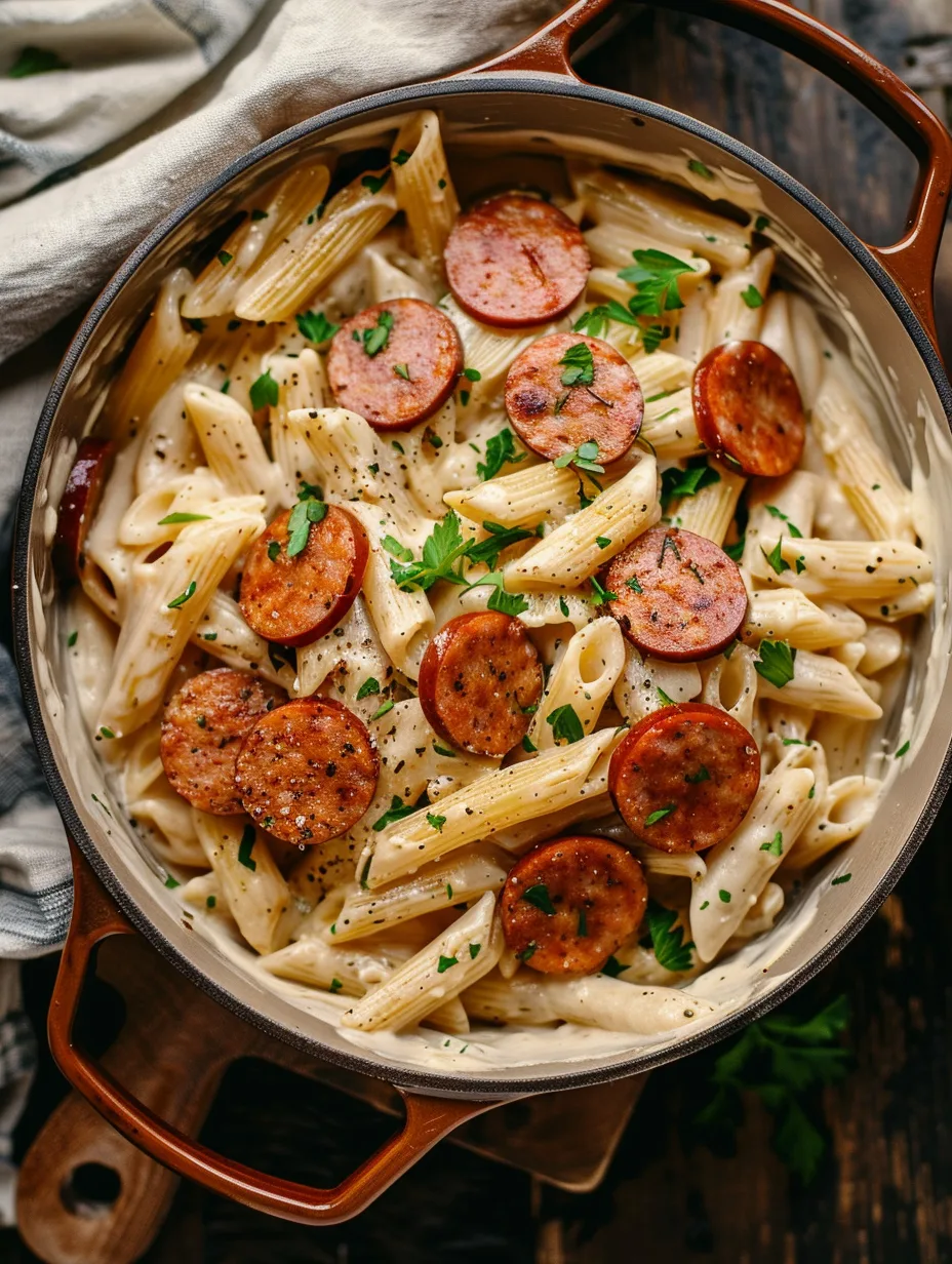 Q: Can I make One-Pot Kielbasa Pasta ahead of time for meal prep? A: Absolutely! This dish is perfect for meal prep. Prepare the complete recipe and divide into individual containers for easy weekday lunches or dinners. The flavors actually improve after sitting overnight. When reheating, add a splash of broth or milk to restore the creamy texture, and heat gently to prevent the sauce from breaking.