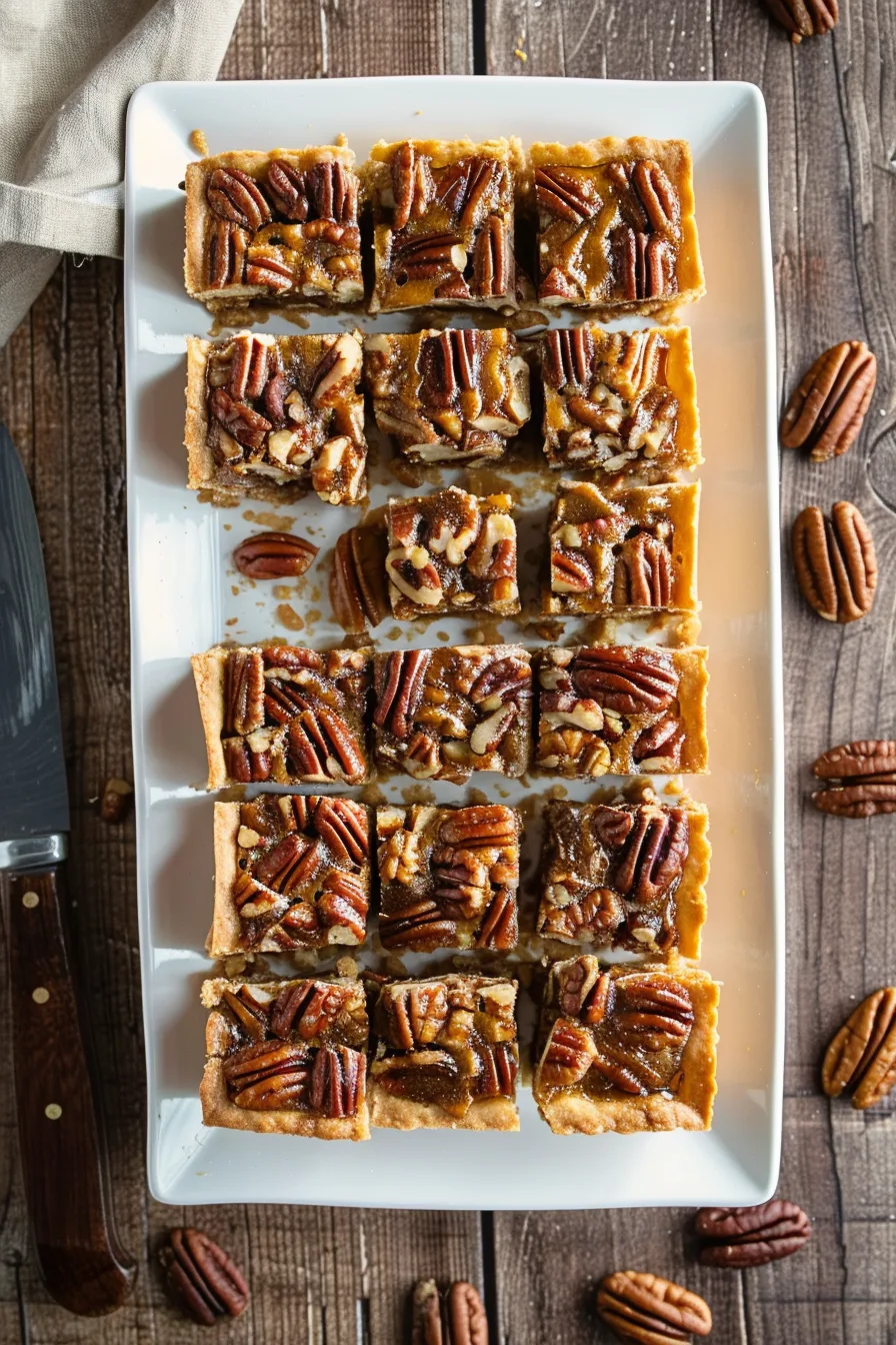 Serve your pecan pie bars on a beautiful platter dusted with powdered sugar for an elegant holiday presentation. This simple touch makes them look bakery-quality.