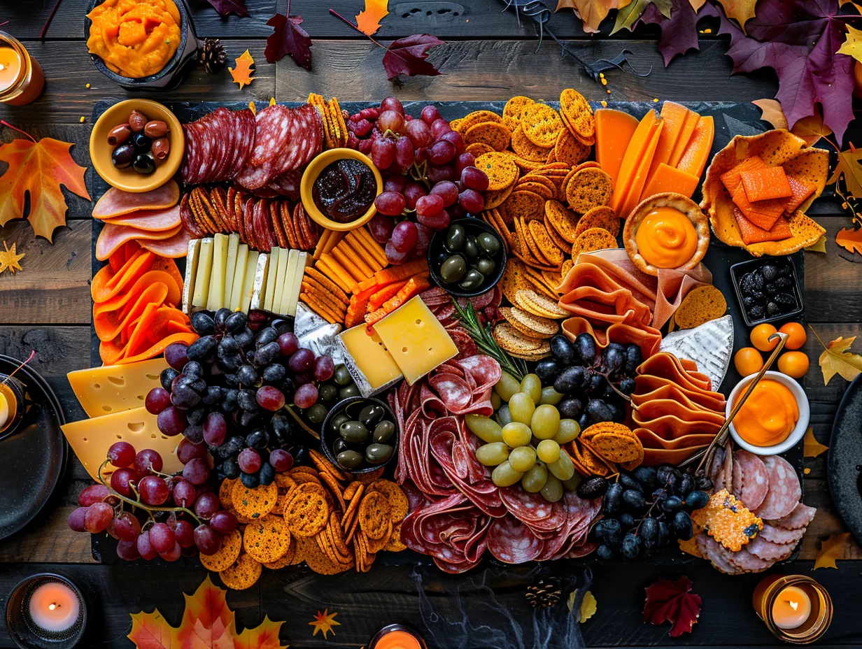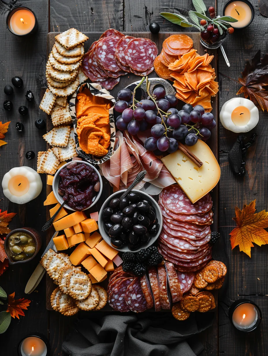 Look for cheeses with natural Halloween colors – aged gouda provides beautiful amber tones, while a good aged cheddar offers that perfect pumpkin orange hue. For meats, choose a variety of textures and intensities: mild salami for conservative palates, spicy chorizo for heat lovers, and perhaps some prosciutto for elegant sophistication.