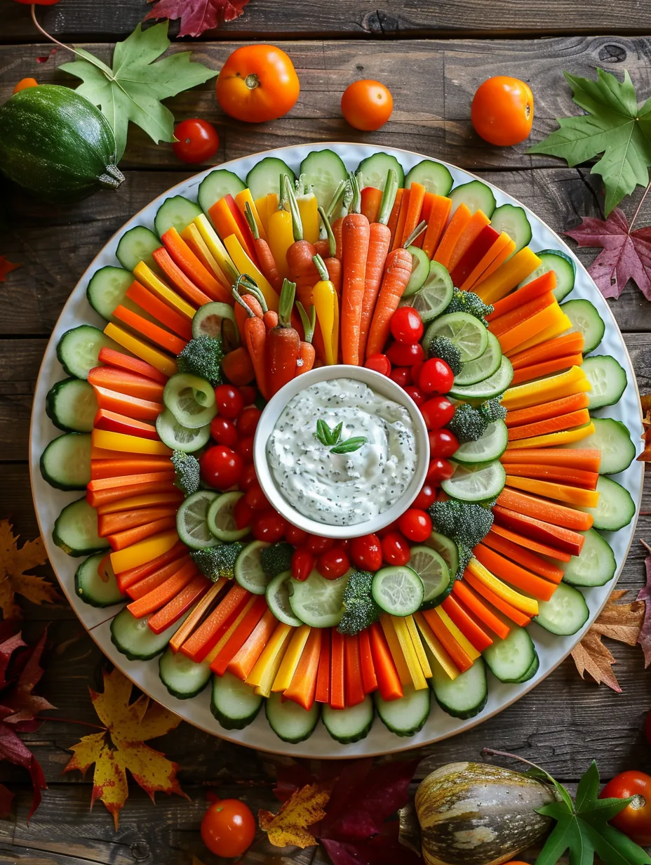 Q: What’s the best dip to use for the center of a turkey veggie platter? A: Ranch dressing and hummus are the most popular choices, but the best dip depends on your guests’ preferences. For traditional crowds, classic ranch or blue cheese works wonderfully. Health-conscious guests appreciate Greek yogurt-based dips or various hummus flavors. For fall themes, try pumpkin hummus or maple-mustard dip. Consider offering 2-3 small bowls with different options rather than one large bowl, allowing guests to choose their favorite while maintaining your turkey design.